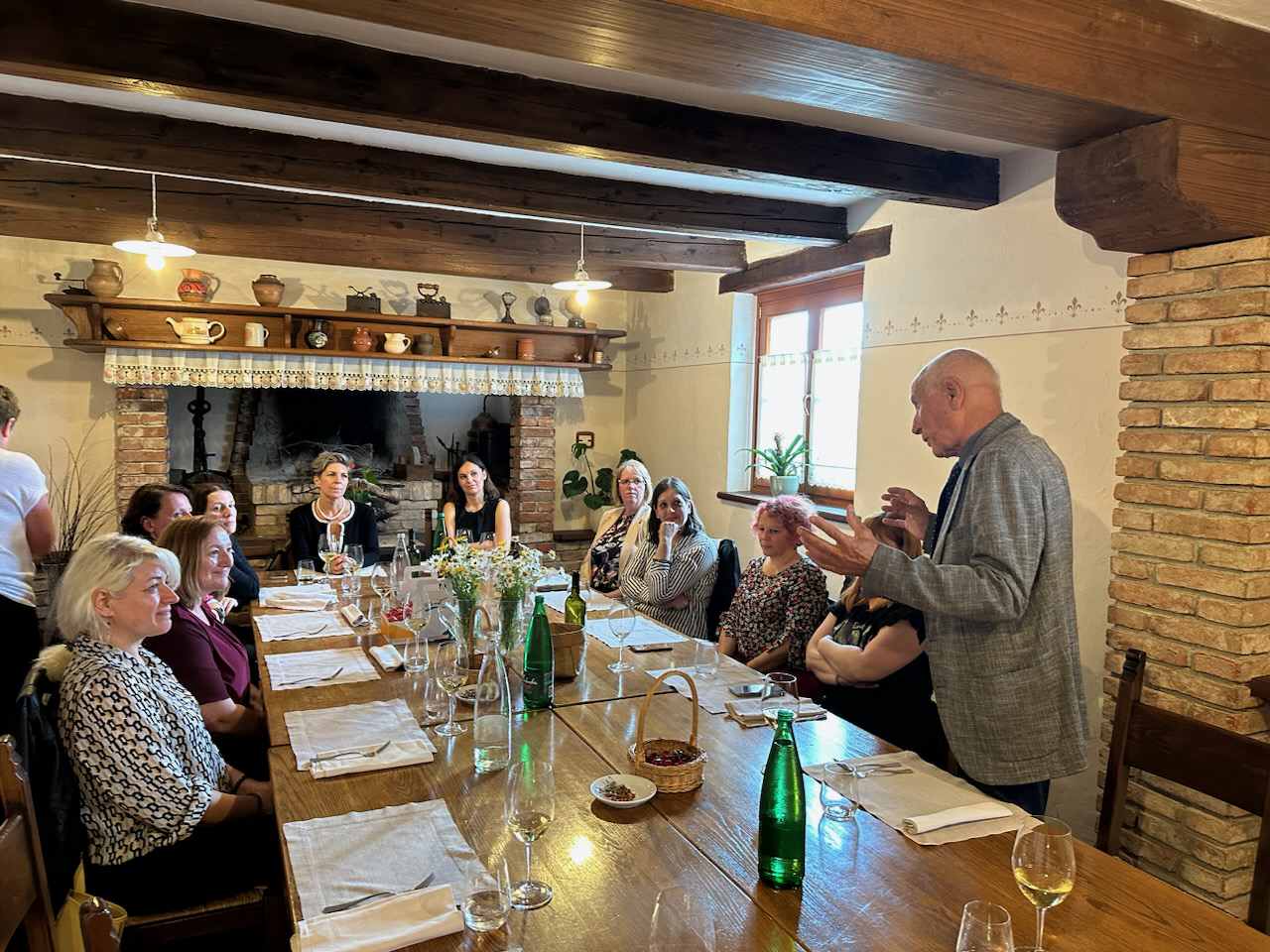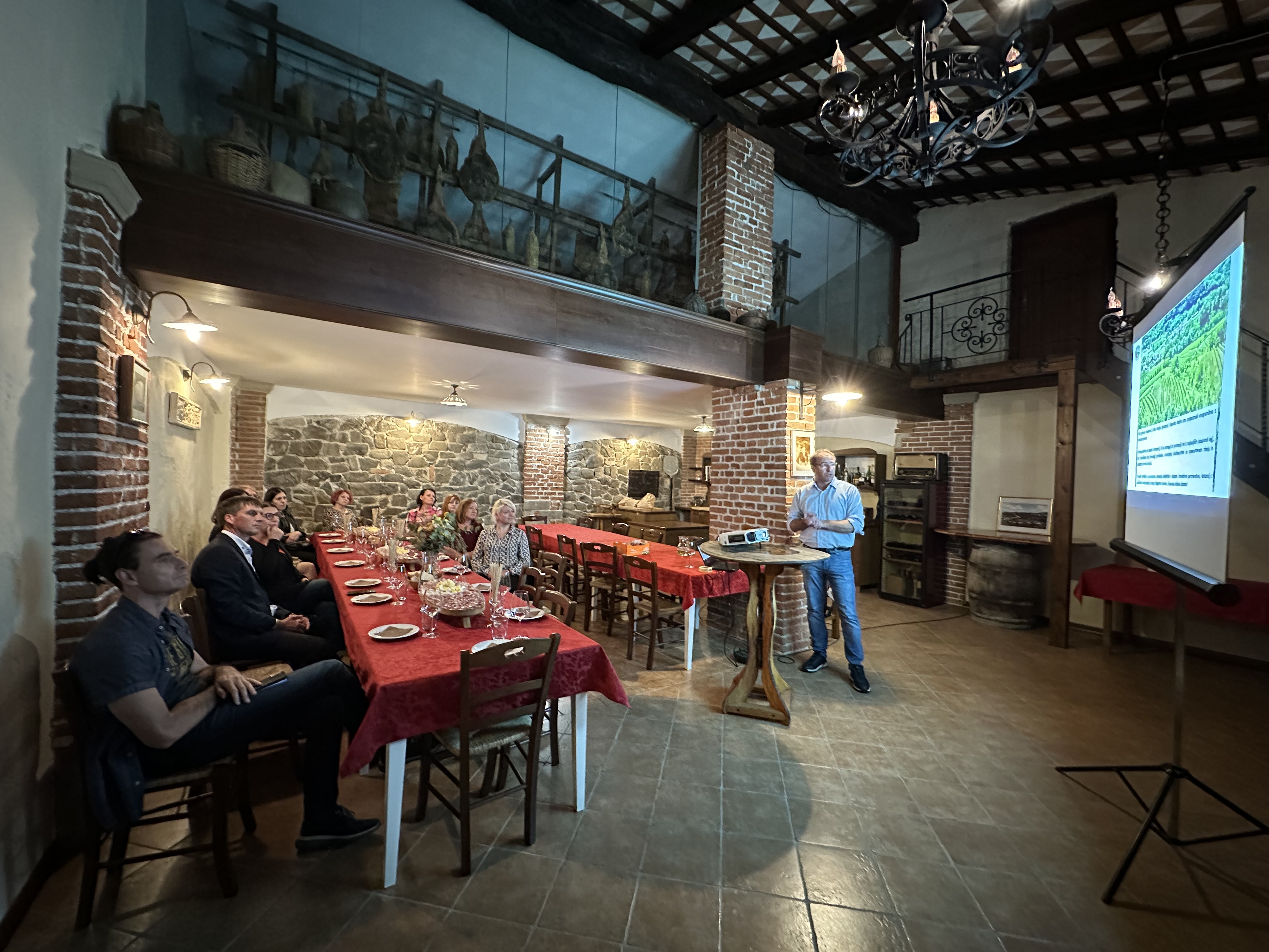 Obisk smo zaključili na Kmetiji Barkola, enem izmed članov Zavoda Konzorcij vinarjev Vipavske doline, kjer je dr. Klemen Lisjak iz Kmetijskega inštituta Slovenije predstavil uspešno zaključen projekt RAZVOJ NOVIH POTENCIALOV V VINOGRADNIŠTVU IN ENOTURIZMU SPODNJE VIPAVSKE DOLINE - ENOTOUR 2 – sklad ESRR . Ta projekt je bil tudi s strani Ministrstva za kohezijo in regionalni razvoj identificiran in sprejet kot uspešna in dobra zgodba ter se uvrstil kot EU PROJEKT – MOJ PROJEKT 2024, med TOP 20 projektov za 20 let Slovenije v EU. Goste je v zaključnem delu obiska s svojo prisotnostjo počastil tudi podžupan Mestne občine Nova Gorica Anton Harej.